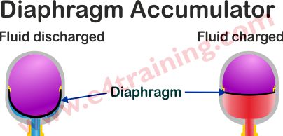 Diaphragm accumulators provide good dynamic performance but are only available in a small size range and the membrane cannot be replaced if it fails. Pressures are typically limited to around 250 bar but they can be used in mobile or industrial applications.